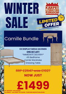 Here you will find a small glimpse of what is on sale; with over 5 departments we always encourage you to pop into store to see the full range! Flooring - Furniture - Sofas - Bedroom - Home accessories - Rugs & more!
